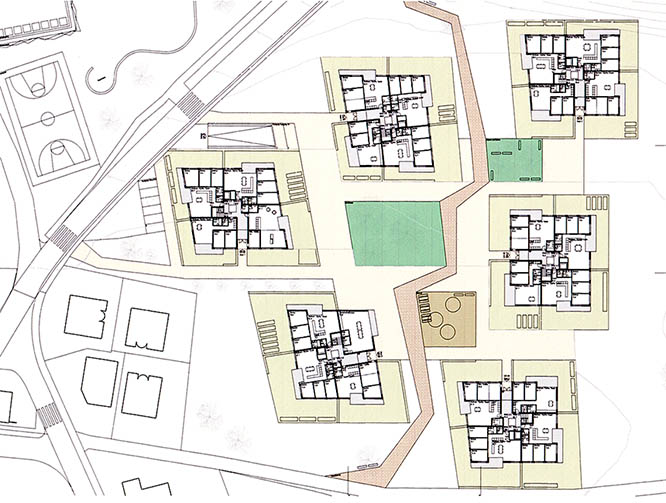 Offener Wettbewerb für günstige Familienwohnungen mit Minergie P, zusammen mit Schulthess Architekten, Jurierung Nov. 2009 Mitarbeit: Franziska Gräub, Hanife Krasniqi, Anja Vetsch