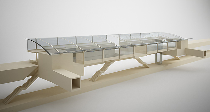 4. Eine mit Velos befahrbare Unterführung verbindet seeseitiges SBB-Areal mit hangseitiger Schule, Migros, Zentrum