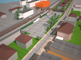 Nach Fertigstellung der Unterführung kann bestehender Parkplatz besser organisiert u. ästhetisch aufgewertet werden.
