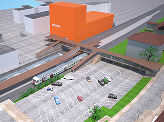Bahninfrastruktur und Neubau des Bahnhof-Gebäudes.