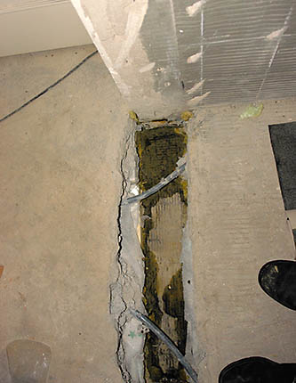 2012 San. Wasserschaden, verursacht durch zwischen Fundamentplatte und UB eintretendem Hangwasser. (Fotos unten: Stefan Altenburger)